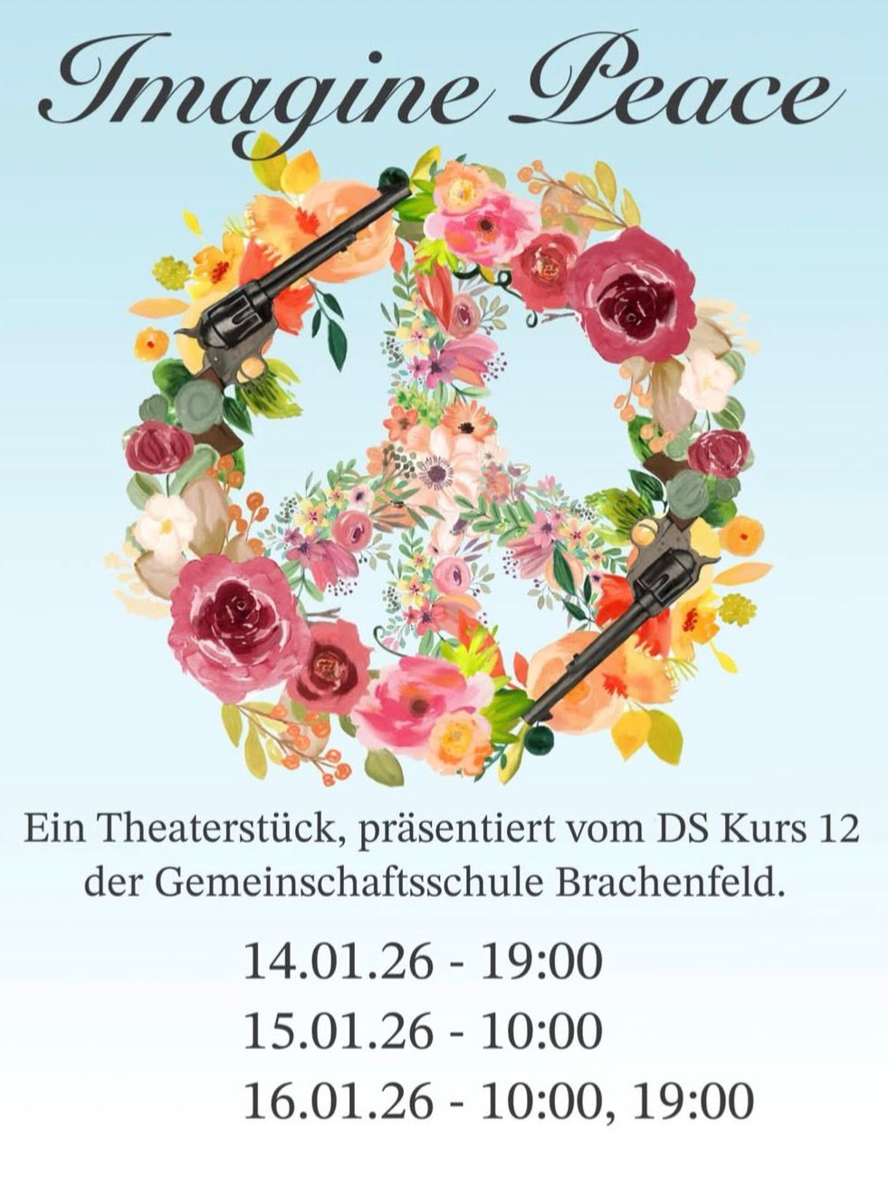 Dieses Jahr bringt der DS Kurs des 12. Jahrgangs die Geschichte zweier Ikonen der Friedensbewegung auf die BĂĽhne. Das selbst geschriebene StĂĽck „Imagine Peace“ spielt vom 14. bis zum 16. Januar bei uns im Theatersaal.